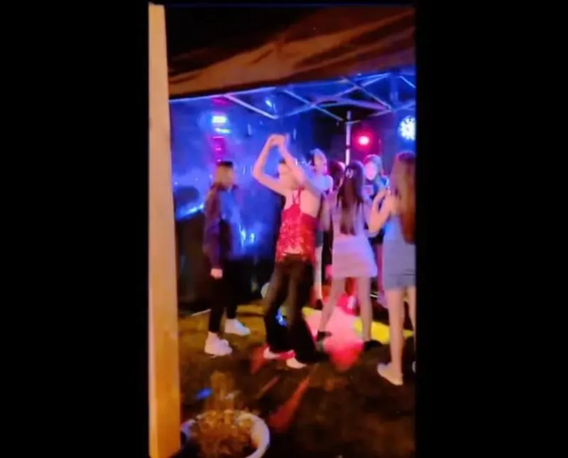Disco tent glowing with lights, laughter, and top tunes